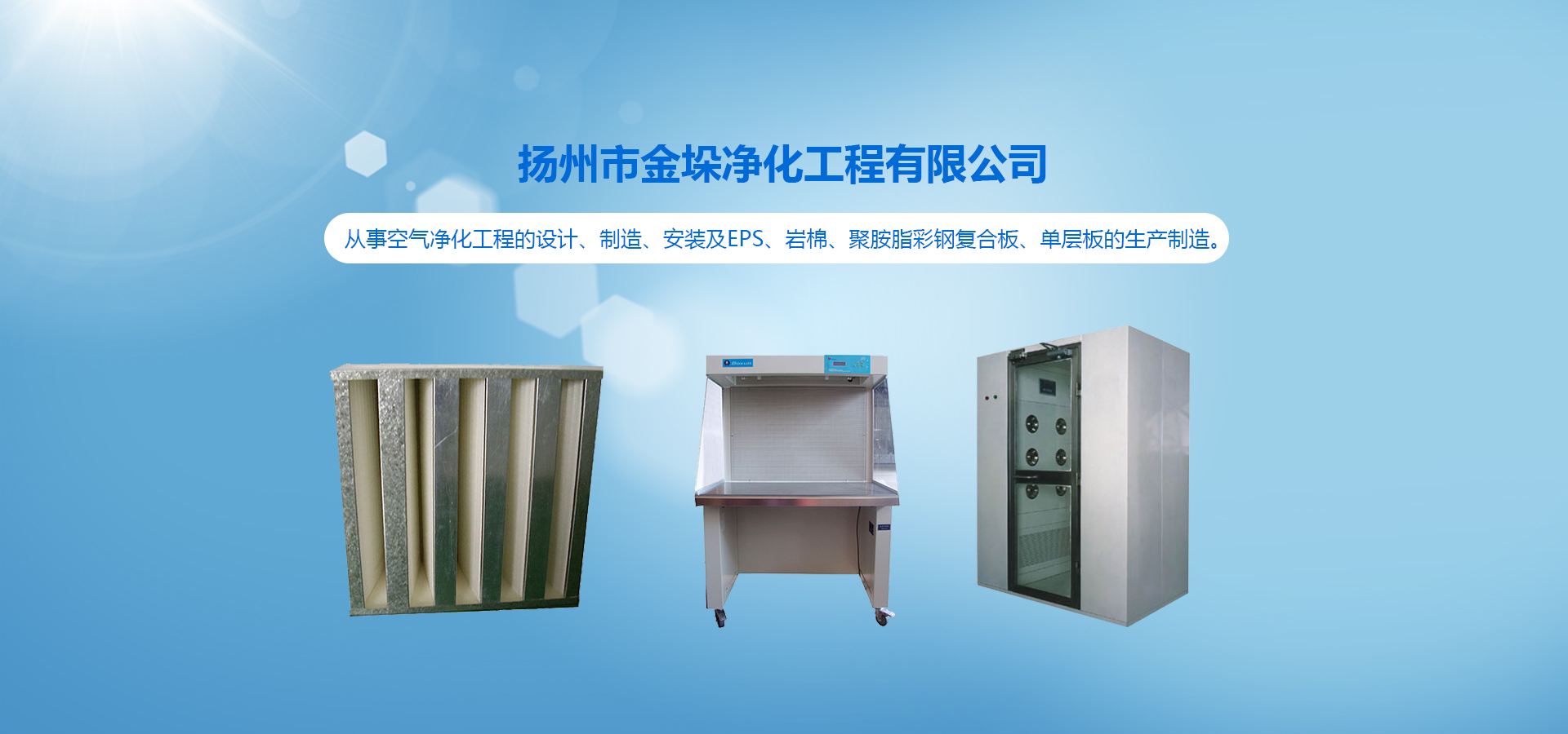 我司專業(yè)從事空氣凈化工程的設(shè)計、制造、安裝及EPS、巖棉、聚胺脂彩鋼復(fù)合板、單層板的生產(chǎn)制造。